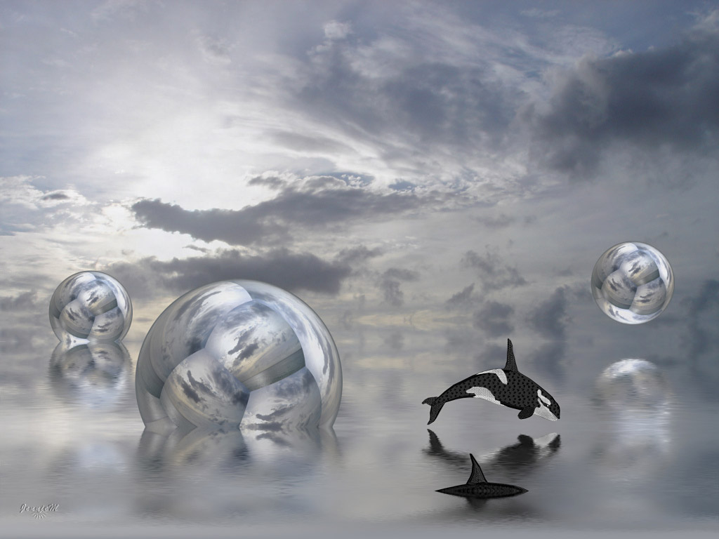 wallpaper computer generated landscapes ocean dolphin